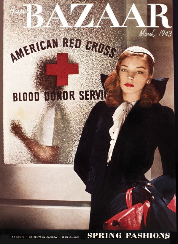 İkinci Dünya Savaşı öncesi derginin ağırbaşlı 'askeri' kapakları: Erwin Blumenfeld, Şubat 1942; Louise Dahl-Wolfe, Mart 1942