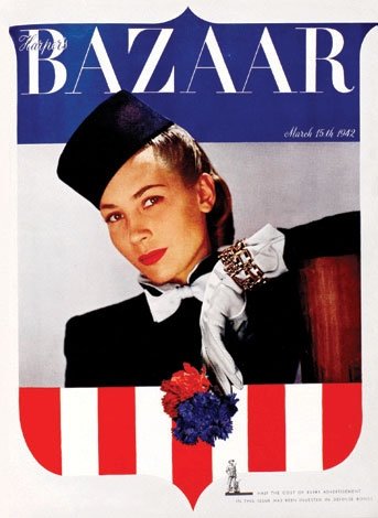 Bois'da bir akşam yemeğinde giyinmek üzere Premet'den siyah, püsküllü bir gece elbisesi ve Creed'den bir üniforma sipariş ettiğimi hatırlıyorum." diye yazmıştı. Bu satırların üzerinden çok zaman geçmeden Fransa, Alman işgali altına girdi ve dört yıl boyunca işgal altında kaldı. Aralık 1941'de Amerika'nın İkinci Dünya Savaşı'na katılmasıyla Bazaar da ağırbaşlı bir kimlik benimsedi. Kapaklarda kırmızı, beyaz ve mavi motifler, Amerikan bayrakları, Kızıl Haç işaretleri ve asker üniforması giymiş kadın fotoğrafları görülmeye başlandı. Bazı kapaklarda 'Askeri görevlerini yapan kadınlar' ve 'Meslek sahibi kadınlar' gibi orduya yazılmaya veya erkekler savaştayken onların işlerini devam ettirmeye teşvik eden spotlar kullanıldı. Savaşın hızını kesmeye başladığı 1943 yılında Eylül sayısının kapağında makyaj masasında oturan ve aynanın kenarına taktığı asker fotoğrafına bakan bir kadın çizimi kullanıldı.