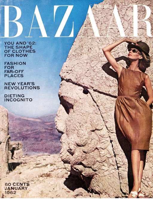 Richard Avedon'un Nisan 1965 sayısında bir uzay başlığıyla fotoğrafladığı Jean Shrimpton kapağı 50 yıl sonra bugün hala geçerliğini koruyor
