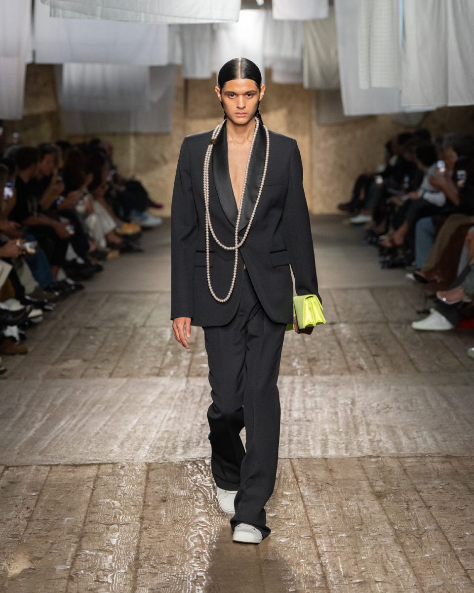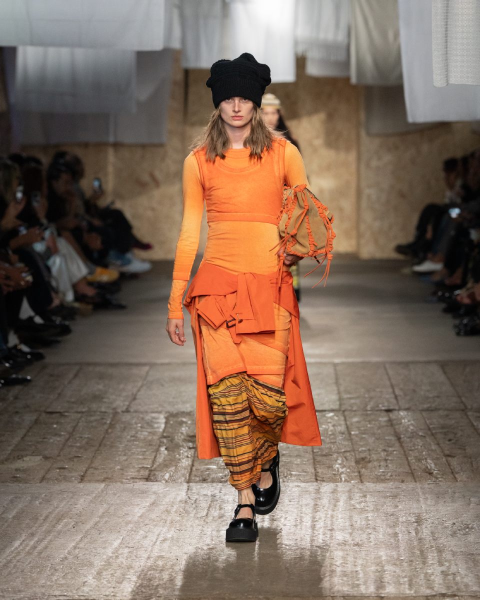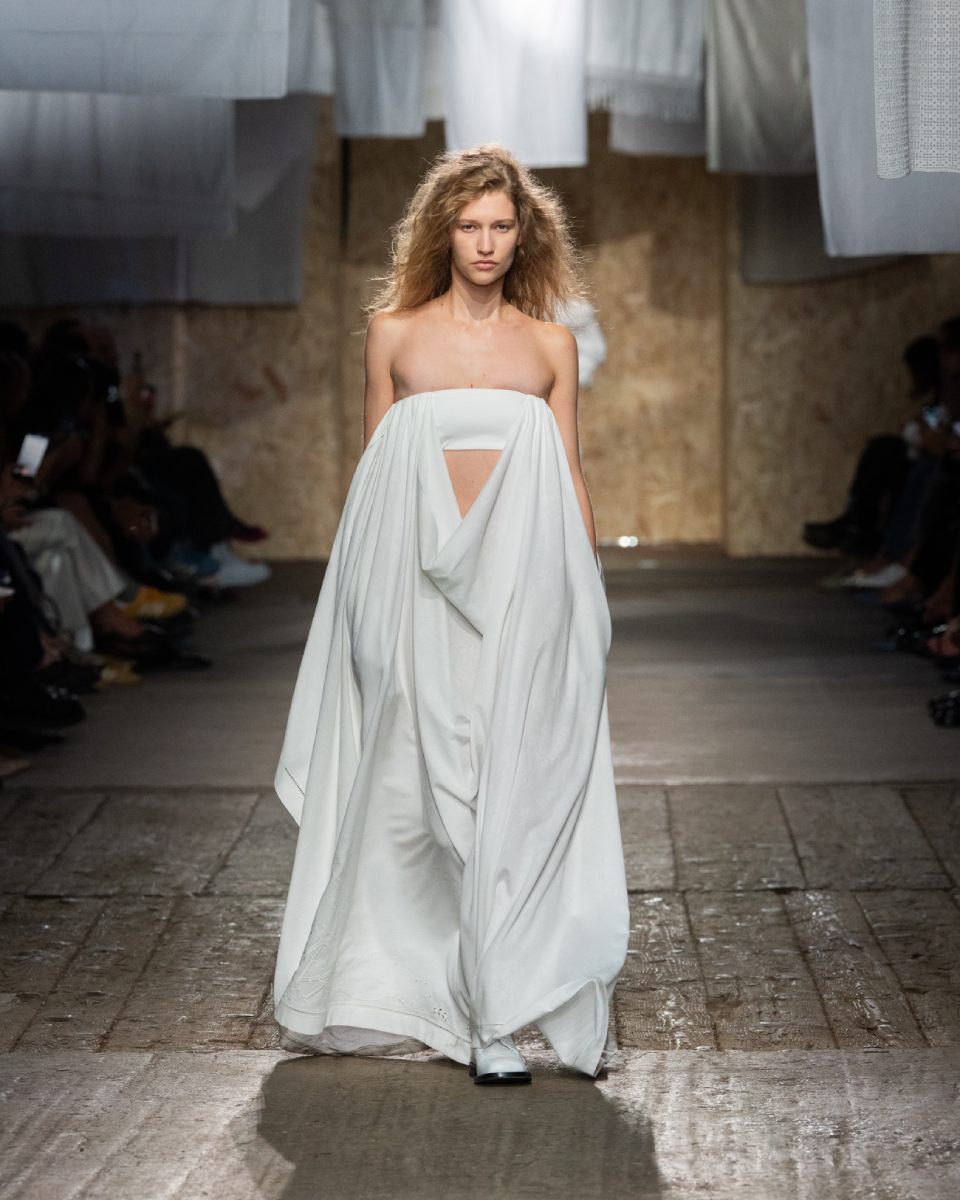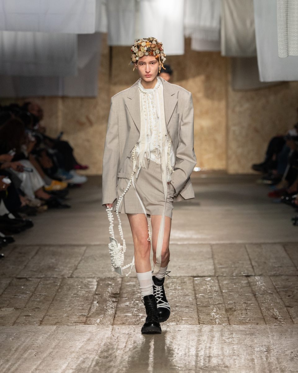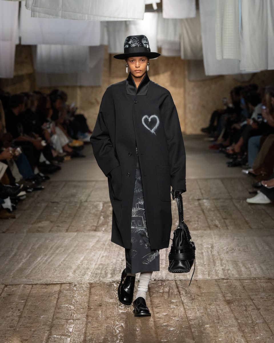 Moschino 2025 İlkbahar/Yaz Koleksiyonu, Adrian Appiolaza'nın üçüncü sezonunda, Franco Moschino’nun mirasını 21. yüzyıl izleyicisi için yeniden yorumladığı, alt kültürel moda gruplarını inceleyen bir koleksiyon olarak karşımıza çıkıyor. Beyaz görünümlerle başlayan defilede, drapeli silüetler, çizgili trikolar, dantel slip elbiseler ve Judy Blame’den ilham alınan aksesuarlar öne çıkıyor. Appiolaza'nın geniş vizyonu, moda dünyasında eğlence ve iyimserlik arayanlara cesur ve dikkat çekici bir stil sunuyor.