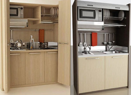 Zorunlu ihtiyaçları karşılamaya yönelik tasarlanan mini mutfaklar sürgü ya da stor kapakları kapatıldığında dekoratif bir dolap izlenimi veriyor. Ülkemizde yalnız yaşayanlar, öğrenciler ve