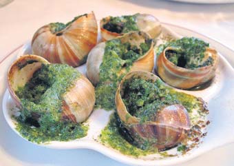 Alakart mönüden seçtiğiniz yemeklerle tıka basa karnınızı doyurduğunuzda, yemeklerinin kalitesi nice Michelin yıldızlı restoranlarla rekabet edebilecek bu restoranda içki dahil kişi başına 50 avro civarında hesap ödüyorsunuz. Ben 34 avroluk fiks mönüyü seçtim. Ana yemek olarak da gözümü karartıp 'escargot' ısmarladım. Biliyorsunuz bu afili ismin ardında yatan, kocaman kabuklu bağ salyangozu. Hemen tüm dillerde salyangoz adı kullanıldığında yemekseverlerin içi kalktığı için, nötr bir isim olan 'escargot' tercih ediliyor.