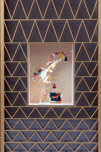 Yeni mağazanın vitrinleri de büyük açılış için titizlikle hazırlanmış. Avusturyalı kağıt heykel sanatçısı Anna-Wili Highfield'ın, marka ile özdeşleşen at figürünü yorumladığı heykellerin yele kısımları Hermès'in ipek fularlarından oluşuyor ve mineli bilezikler dürbün formunda kompozisyona eşlik ediyor.