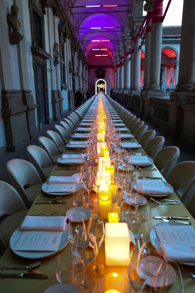 140 kişilik zarif akşam yemeği, büyüleyici tonozlu tavanlar altında gerçekleştirildi. İki Michelin yıldızlı şef Antonio Guida’nın Milano’nun yaratıcı ruhuna övgü niteliğinde hazırladığı özel menü, gecenin zarafetini yansıttı. Avrupa kültürel mirasına ithafen sahne alan yaylı dörtlü Le Dimore del Quartetto ise geceye müzikal bir derinlik kattı.