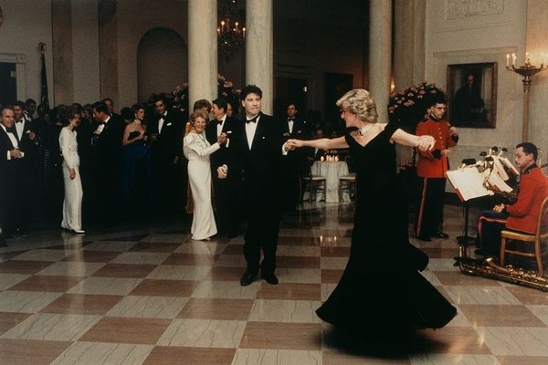 Victor Edelstein tasarımı olan elbise Prenses tarafından Beyaz Saray Gala'da giyildi. Akşamın ilerleyen saatlerinde, o ve Travolta birlikte odanın etrafında dans ettiler ve bunun sonucunda ortaya çıkan fotoğraflar küresel manşetlere dönüştü. Tarihi Kraliyet Sarayları küratörü Eleri Lynn, elbisenin Diana'nın moda tarihinde önemli bir anı işaret ettiğini söylüyor. Lynn, Prensesin elbiseye bayıldığını ve toplamda sekiz kez giydiğini belirtiyor. ""İmza stilini geliştirdiği anı işaret ediyor ve tabii ki aktör John Travolta ile dans etmesinin ikonik görüntüleri, biçim ve işlevin mükemmel bir birlikteliğiydi, elbise dans ettiklerinde güzelce dönüyor ve unutulmaz silueti yaratıyor. "