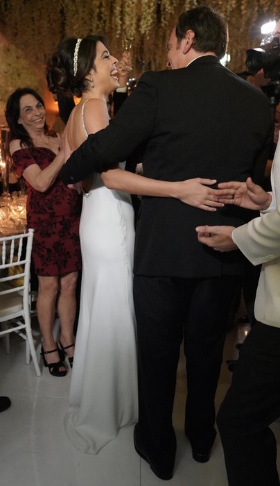 Geceye yeni evli çiftin pistte yaptığı romantik danslar damgasını vurdu. Tarantino ile 35 yaşındaki Pick, yönetmenin Inglorius Bastards filminin İsrail'deki tanıtım etkinlikleri sırasında tanışmıştı.