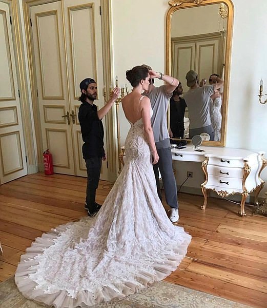 Ayak üstü gazetecilerin sorularını yanıtlayan modacı, Evcen'in gelinliği hakkında, "Fahriye Hanım ile kaç kez prova yapıldı ve kaç kez gördü gelinliğini. Onun beğenip istediği gelinlikti" dedi.