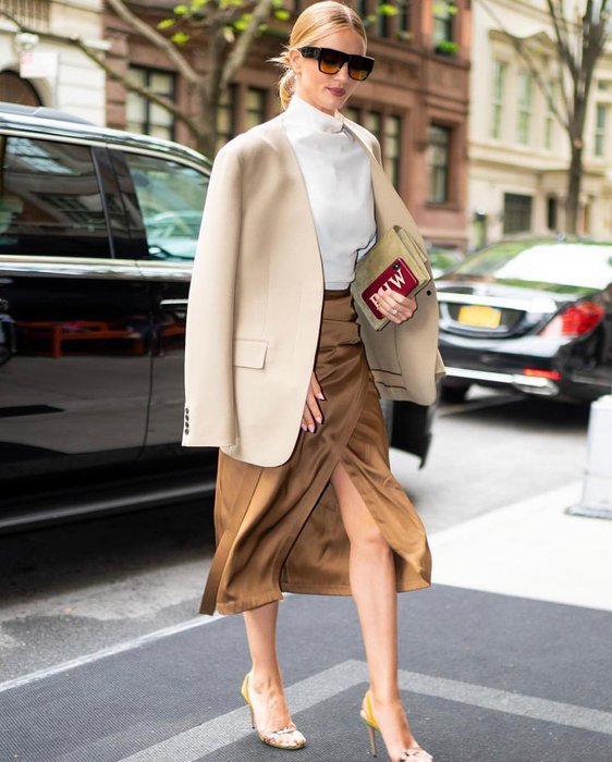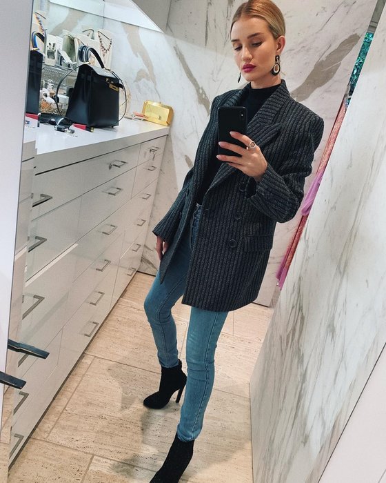 Her zaman mükemmel şık bir stile sahip olma konusunda ustalaşmış olsa da Rosie Huntington-Whiteley'in özellikle tek bir parça söz konusu olduğunda onun bir uzman olduğunu fark ettik: büyük boy blazer.