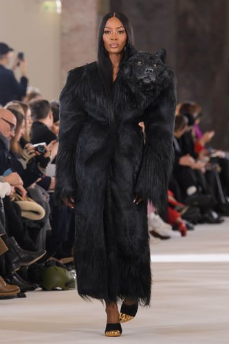 Versace ve Gucci gibi sektördeki birçok moda evinin son zamanlarda kürk kullanmayı bırakma sözü verdiği düşünüldüğünde, safari ganimetleri gibi görünen elbiseler yapma seçimi tepki için çok fazla. Pistte Shalom Harlow ve Naomi Campbell'da görülen aslan başı ve leopar ve dişi kurt, köpük ve reçine gibi insan yapımı malzemelerden tamamen elle yapılmış sahte tahnitçilik kreasyonları olsa da, internet mutlu değildi.