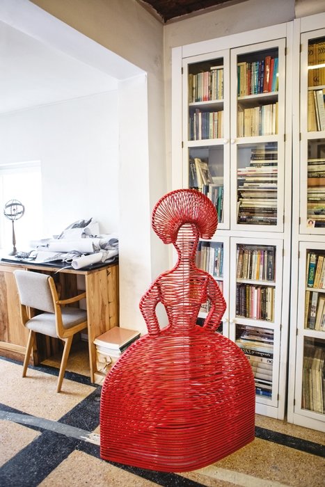 Selma Gürbüz'ün 2010'daki Arketip serisinde yer alan Kırmızılı Kadın adlı demirden heykel çalışması