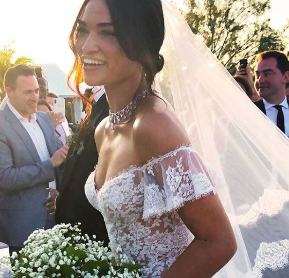 27 yaşındaki Avustralyalı model, düğününde, baştan aşağı dantel işlemeli, transparan bir gelinlik giydi. Cesur dekolteli gelinlik, İngiliz tasarımcı Ralph & Russo imzalı.