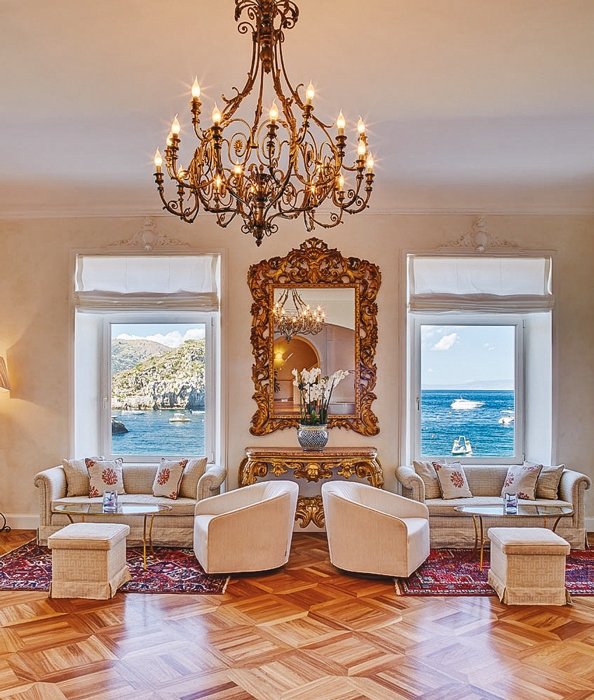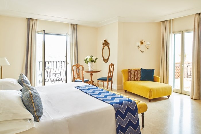 Belmond Villa Sant'Andrea'nın odaları, göz alıcı bir manzaraya açılan Fransız balkonlara sahip