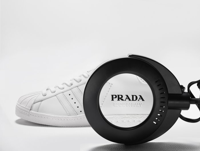 Prada, Adidas Limited Edition için, orijinal olarak 1969'da piyasaya sürülen Superstar spor ayakkabı ve yine Adidas Originals stilinin bir temel taşı olan sembolik Adidas Originals ayakkabılarını destekleyerek Adidas'a saygısını gösteriyor.