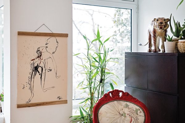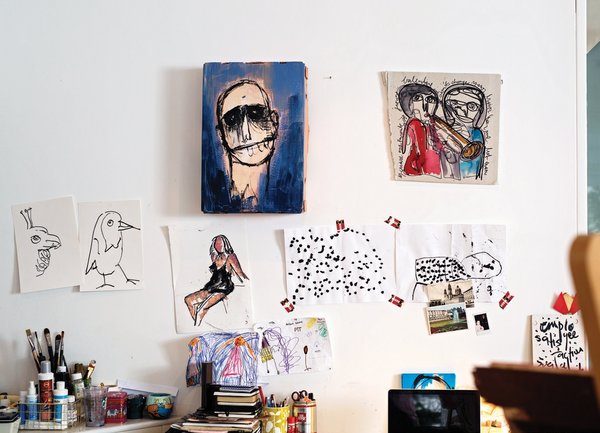 Benim ilhamım, belki çok klişe ama, çocuklarım. Genellikle büyük kızımın seçtiği renkleri alıyorum. Karıştırıyorum. Figürleri yaparken de 4,5 yaşındaki kızıma çizdiriyorum önce, onun o serbestliği gibi yapmaya çalışıyorum. Onların efektlerini alıyorum, resimlerdeki naiflik de onlardan geliyor olabilir…