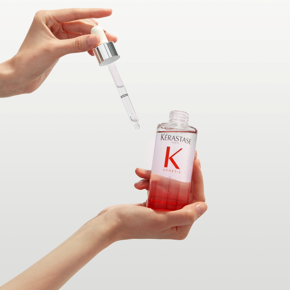 Kérastase, özel olarak geliştirdiği Genesis Sérum Anti-Chute Fortifiant ile; havaların serinlemesi ve nem oranının düşmesiyle daha kırılgan hale gelen saçlardaki dökülmesi hissini azaltma konusunda oldukça iddialı. İçeriğinde yer alan Aminexil, Edelweiss Kök Hücresi ve Zencefil Kökü ile saç derisini yatıştıran serum, kökten uca güçlendirmekle kalmıyor aynı zamanda saçın uzaması için ideal ortamı da hazırlıyor. Günde bir kez kuru veya havluyla nemi alınmış saç derisine hafif masajla uygulanan Kérastase Genesis Sérum Anti-Chute Fortifiant, durulama gerektirmeyen kullanımıyla pratik bir çözüm sunuyor.