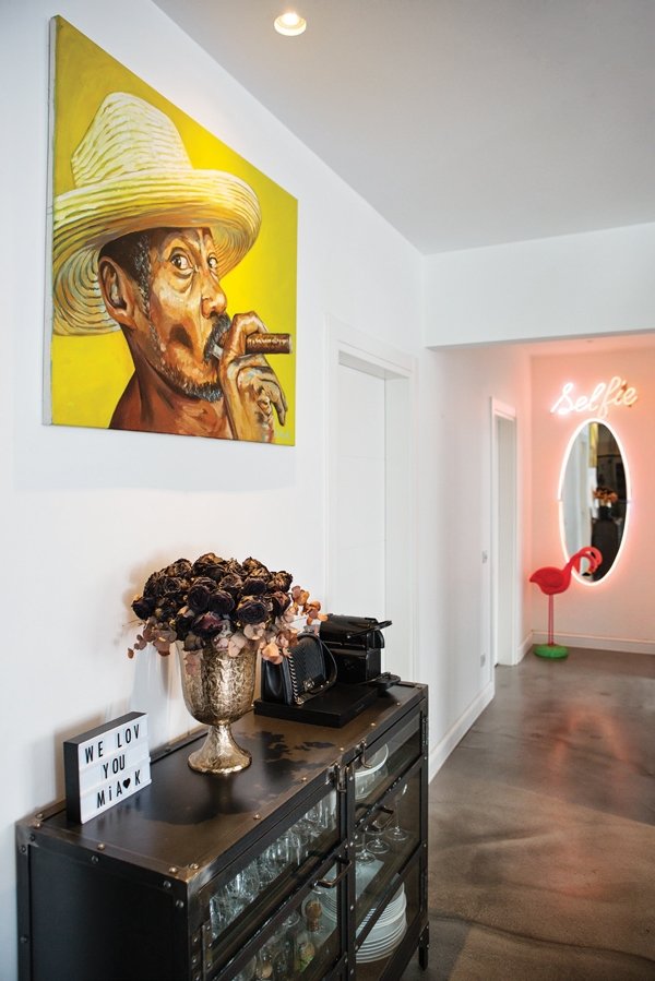 Evin dekorasyonunda çıktığım seyahatlerden ilham aldım. Nereye gidersek gidelim dönerken bir şeyler getiriyoruz, bu yüzden evimiz çok özel çünkü her objenin arkasında bir hikaye mevcut. Mesela yemek odasındaki iki büyük tablo benim için çok büyük bir ifade gücüne sahip ve bu güçlü sanat parçalarına bakmaktan hiç sıkılmıyorum. Hikayeleri ise inanılmaz! Los Angeles'tayken Bless the Mess kampanyası için bir yer arıyordum ve duvarında çılgın grafitiler olan bir binaya rastladım. İçine girdiğimde ise Louis Carreon'un stüdyosunda buldum kendimi, bir anda kaynaştık ve çok iyi arkadaş olduk. Bu iki tabloyu sardım ve İstanbul'a getirdim; şaşırtıcı biçimde Louis çok tanınan bir sanatçı haline geldi. Şu an çalışmalarına bizim ödediğimizden beş kat daha fazla değer biçiliyor. Hayat sürprizlerle dolu ve yolculukta inanılmaz insanlar sizleri bekliyor.