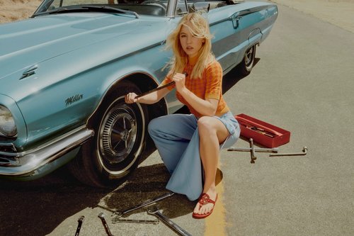 İlk olarak 2000'lerinde başında tasarlanan Miller sandaletleri, Sweeney'de bebek mavisi eski bir üstü açık araba ile yola çıkarken gösteriliyor. Sweeney lastiği değiştirirken yeni kıyafetlere ve Miller sandaletlerini giyiyor.