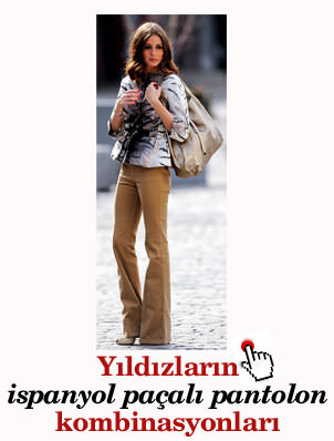 Son dönemde, İspanyol paçaların geri dönüşü birçok kadını sevindiriyor olsa da, nasıl giyinmesi gerektiğini iyi bilenleri biraz hüsrana uğratıyor. Şu bir gerçek ki, İspanyol paça pantolonlar ince ve uzun vücut yapısındaki kadınlara daha çok yakışırken, kısa ve kalın bacaklı kadınları olduğundan daha kısa ve kilolu gösteriyor. Ancak bu salaşlık yanlısı akımın etkisinde kalanlara tüyomuz, annelerinizin tozlanmış albümlerini çıkarmışken, İspanyol paçalı jean'lerini nasıl kombine ettiklerine göz atmaları oluyor. Platform topuklu ayakkabılarla muhteşem göründüklerini görecek ve tereddütsüz uygulamaya geçeceksiniz…