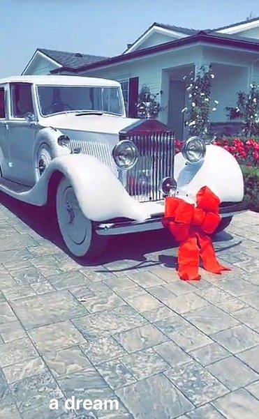 Scott, vintage görünümlü lüks otomobile hediye paketi görünümü vermek üzere pembe bir kurdele bağlattı. Evinin bahçesinde duran otomobilin görünümünü paylaşan Kylie Jenner, "Bir rüya" yorumunu yaptı.