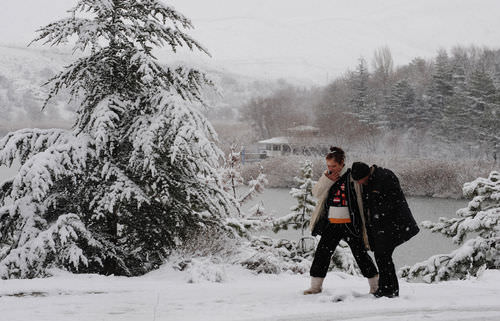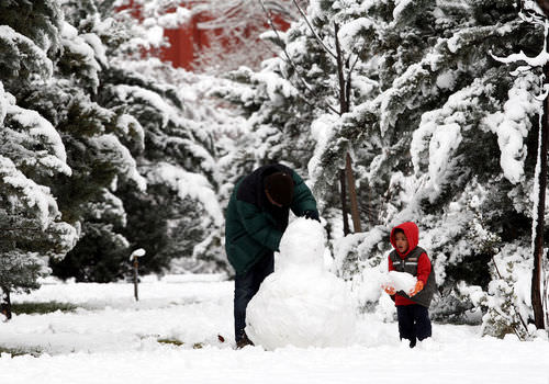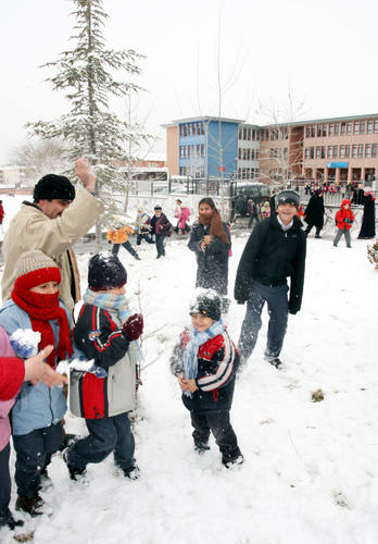 ANKARA'DA SABAH SAATLERINDE BASLAYAN KAR YAGISI SURUYOR. BEYAZ ORTUNUN TADINI CIKARTAN ANKARALILAR, SEGMENLER PARKINDA KARDAN ADAM YAPTI.
