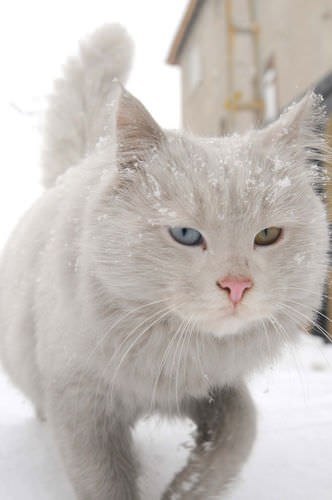 VAN'DA SABAH SAATLERINDE BASLAYAN KAR YAGISI HAYATI OLUMSUZ YONDE ETKILEDI. SOKAKTA KALAN VAN KEDISI ISE KAR YAGISININ ARDINDAN YIYECEK BULMAKTA ZORLUK CEKTI.