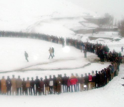 DOGU ANADOLU BOLGESI'NDE SOGUK HAVA VE KAR YAGISI YASAMI OLUMSUZ ETKILIYOR. KAR KALINLIGININ 17 SANTIMETREYE ULASTIGI KARS'IN SARIKAMIS ILCESINDE ETKILI OLAN SOGUK HAVA NEDENIYLE KURUMASI ICIN ASILDIGI CAMASIR IPINDE DONAN BIR ELDIVENIN GORUNTUSU OBJEKTIFE BOYLE YANSIDI.