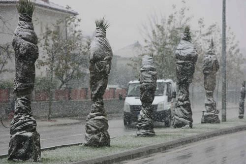 Sakarya'da kent merkezine mevsimin ilk karı düştü. Kar yağışı yüksek kesimlerde etkili olmaya başladı. kent merkezinde bulunan palmiye ağaçlarının soğuktan korunması için belediye ekipleri önlem aldı. Sakarya Büyükşehir Belediyesi'ne bağlı ekipler, palmiyelerin gövdelerini çuvallarla sardı.