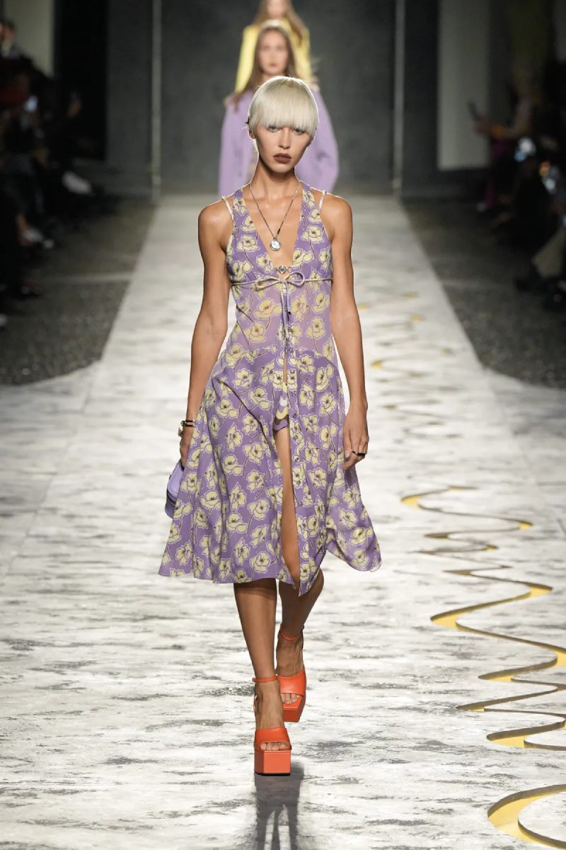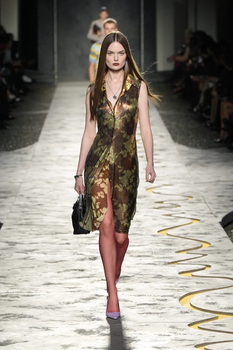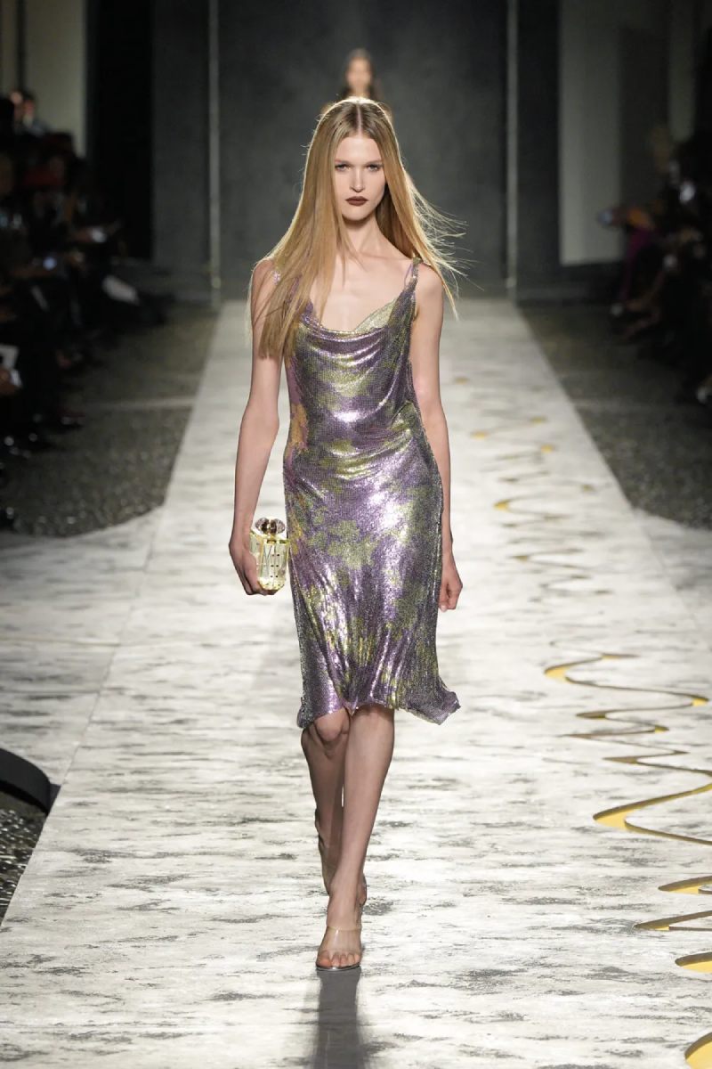 Versace 2025 İlkbahar/Yaz koleksiyonu, Donatella Versace’nin geçmişe nostaljik bir yolculuk yaparak, 1997 İlkbahar Versus defilesinden ilham aldığı tasarımlarla Milano Moda Haftası’nda göz kamaştırdı.