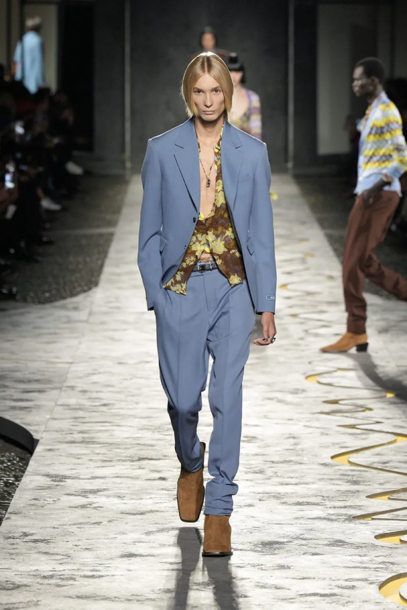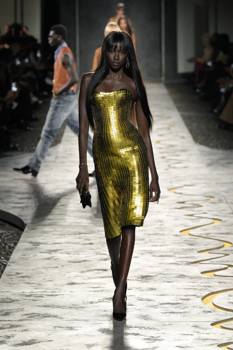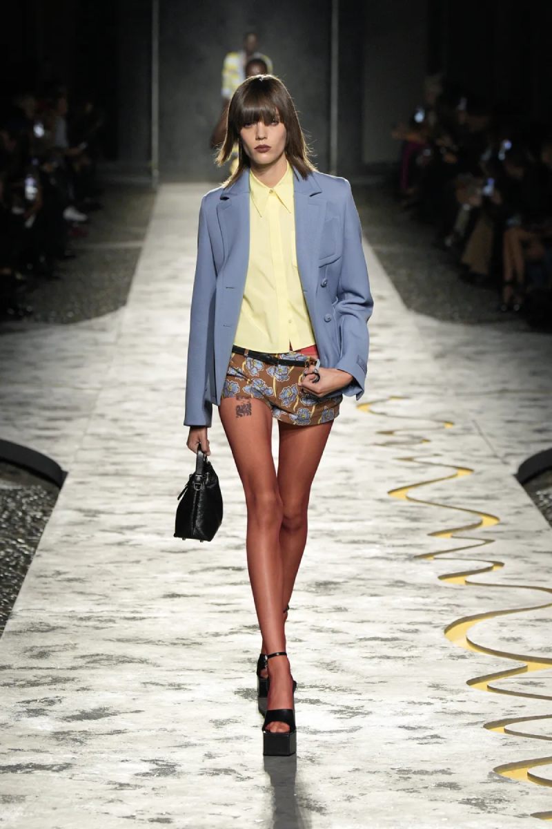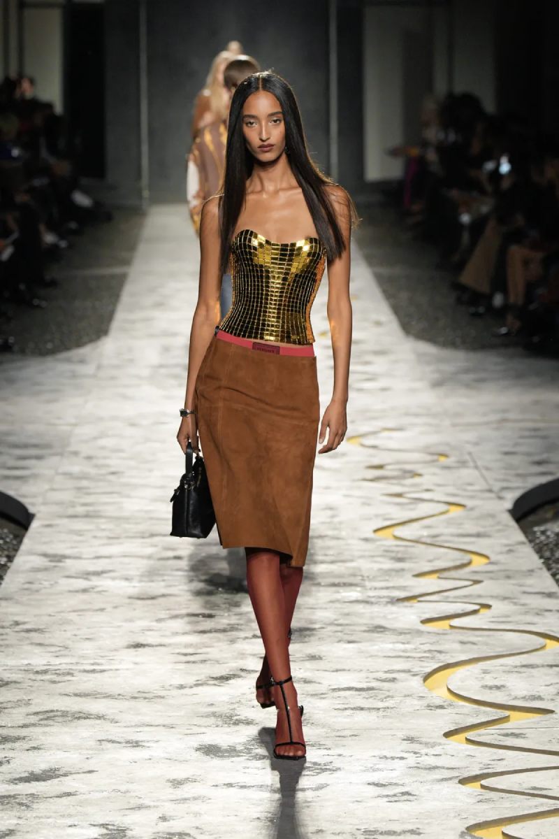 Versace 2025 İlkbahar/Yaz koleksiyonu, Donatella Versace’nin geçmişe nostaljik bir yolculuk yaparak, 1997 İlkbahar Versus defilesinden ilham aldığı tasarımlarla Milano Moda Haftası’nda göz kamaştırdı.