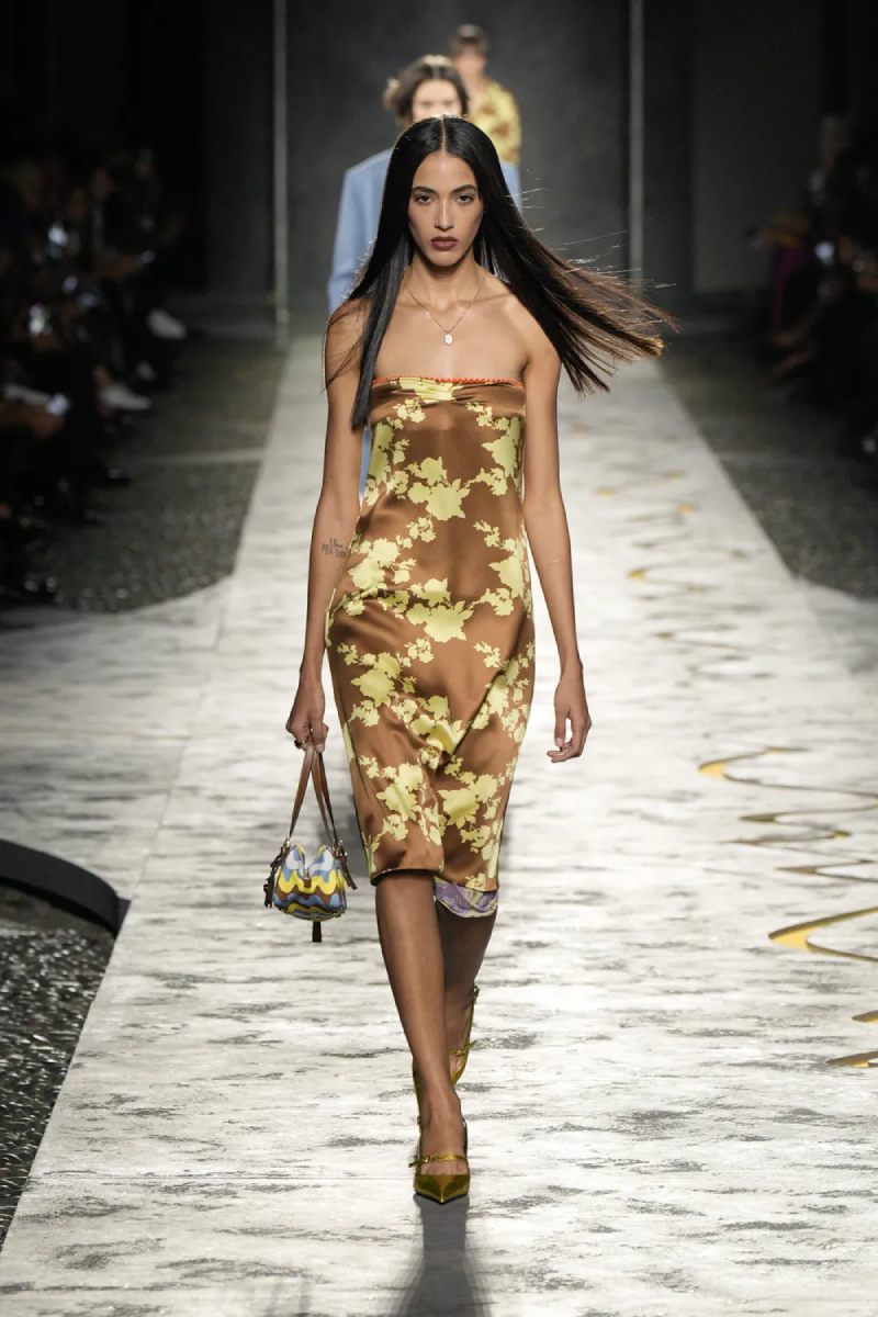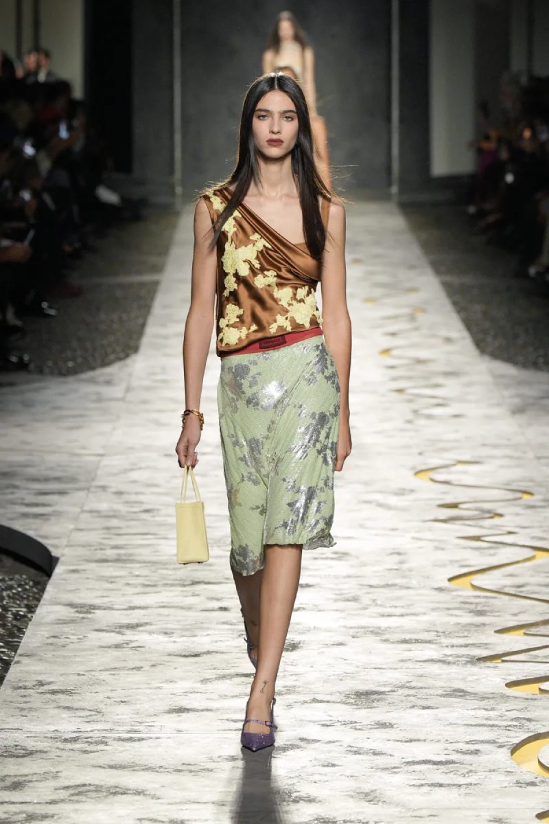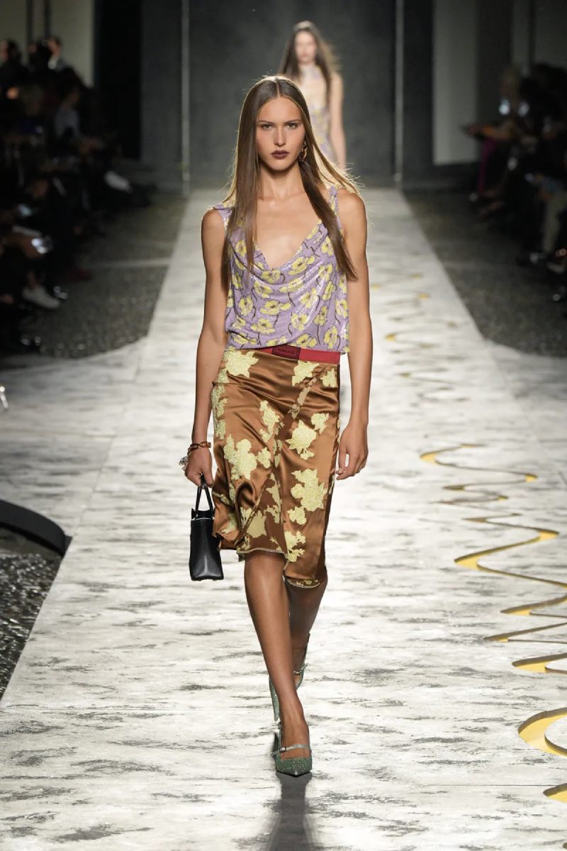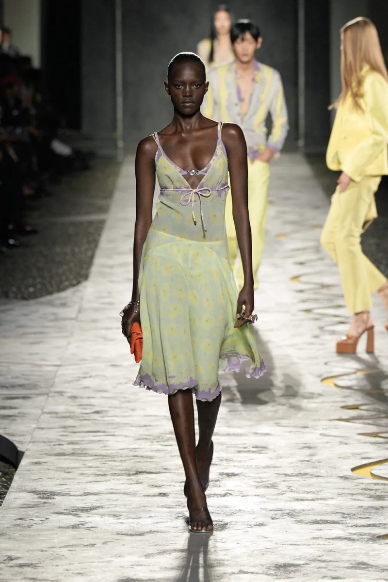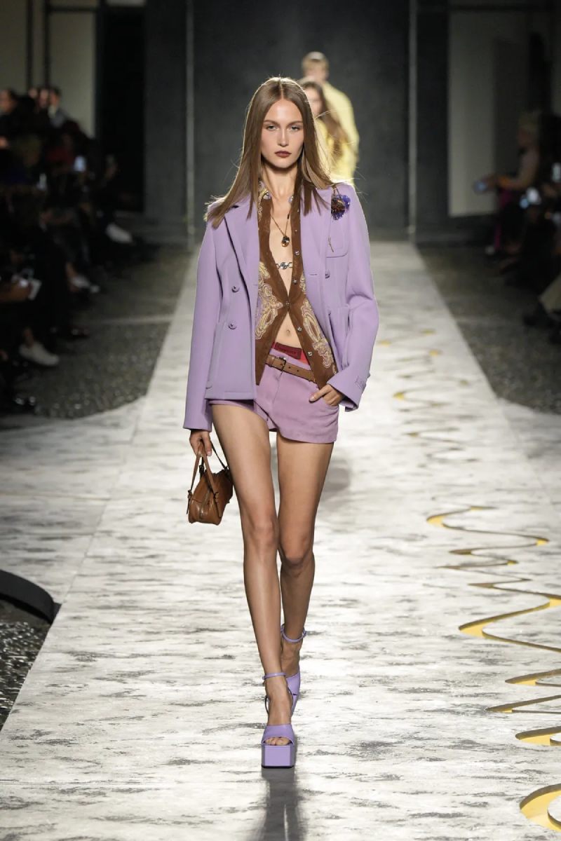 Versace, 2025 İlkbahar/Yaz koleksiyonuyla geçmişin enerjisini günümüz teknolojisiyle buluşturuyor. “Dünyada çok fazla karanlık varken - bu koleksiyonla, renk, ışık, iyimserlik ve neşe getirmek istedim - buna hiç bu kadar ihtiyacımız olmadı!” açıklamasını yapan ünlü tasarımcı Donatella Versace’nin 1997 İlkbahar Versus defilesinden ilham aldığı bu koleksiyon, dalgalı desenli trikolar, çiçek desenli ipek ve zincir zırh kumaşlarla 90’ların özgür ruhunu yansıtıyor. Pastel tonlar, slip elbiseler hırkalar ile genç bir hava veren koleksiyon, altın payetli, 3D baskı ve dikişsiz elbiseler gibi yenilikçi detaylarla dikkat çekiyor. Versace'nin bu nostaljik dönüşü, moda dünyasında yeniden canlanmayı başaran ve genç moda tutkunlarını geçmişe çeken bir dönemi vurguluyor.
