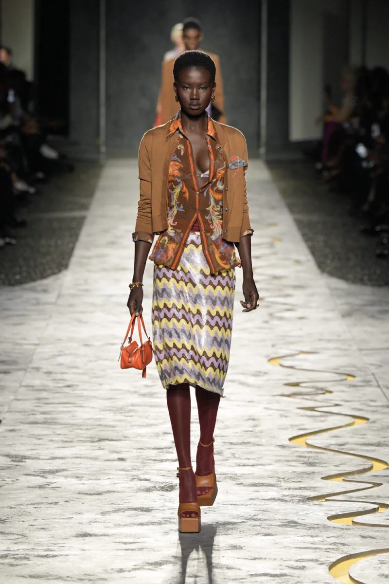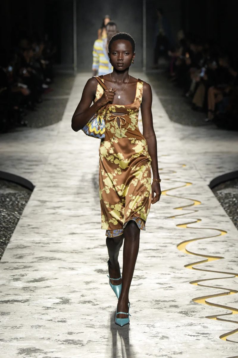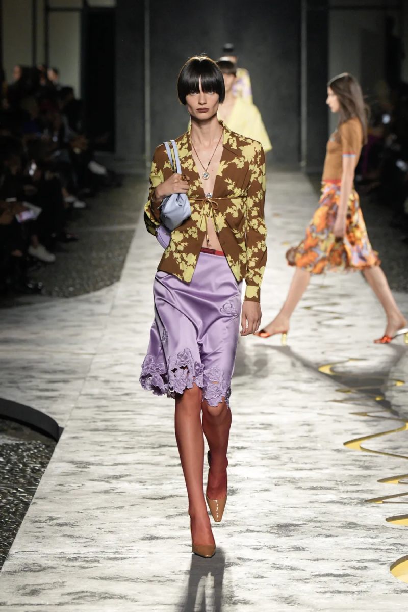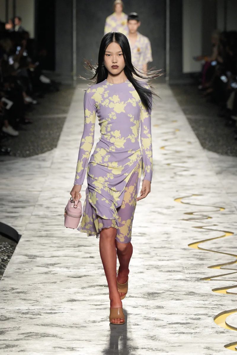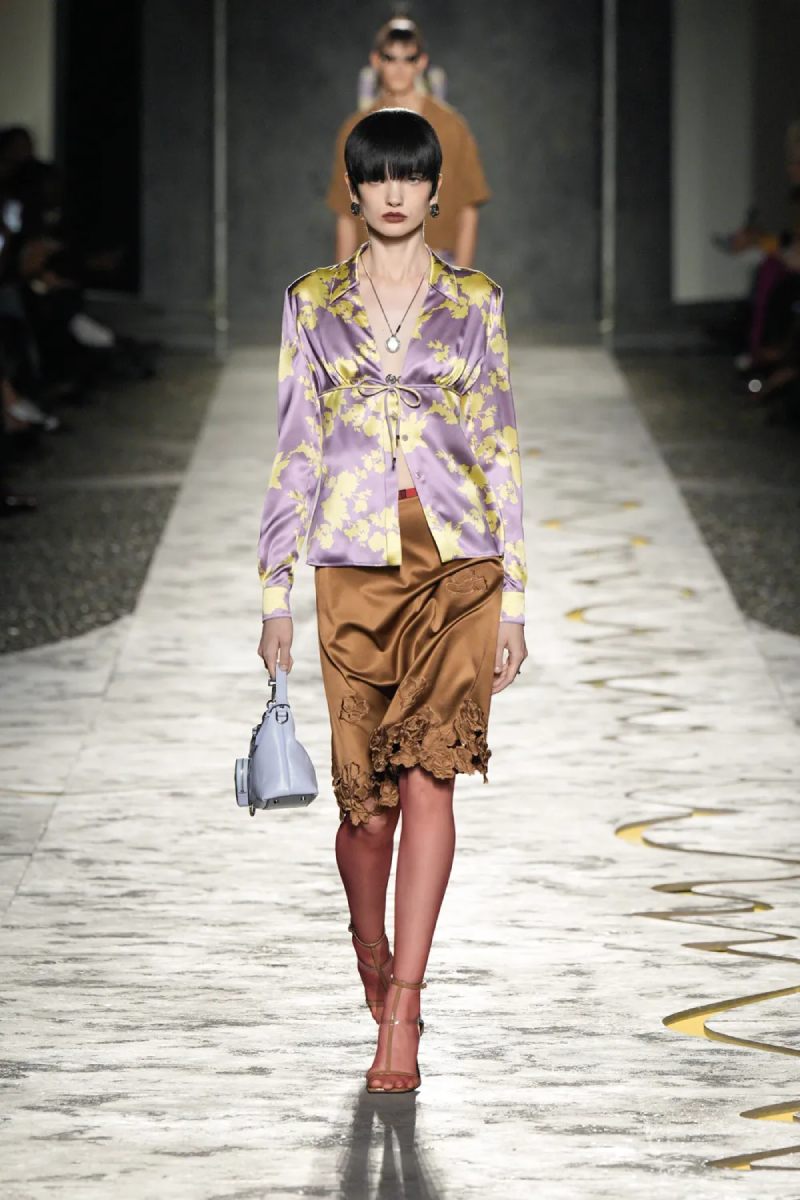 Versace, 2025 İlkbahar/Yaz koleksiyonuyla geçmişin enerjisini günümüz teknolojisiyle buluşturuyor. “Dünyada çok fazla karanlık varken - bu koleksiyonla, renk, ışık, iyimserlik ve neşe getirmek istedim - buna hiç bu kadar ihtiyacımız olmadı!” açıklamasını yapan ünlü tasarımcı Donatella Versace’nin 1997 İlkbahar Versus defilesinden ilham aldığı bu koleksiyon, dalgalı desenli trikolar, çiçek desenli ipek ve zincir zırh kumaşlarla 90’ların özgür ruhunu yansıtıyor. Pastel tonlar, slip elbiseler hırkalar ile genç bir hava veren koleksiyon, altın payetli, 3D baskı ve dikişsiz elbiseler gibi yenilikçi detaylarla dikkat çekiyor. Versace'nin bu nostaljik dönüşü, moda dünyasında yeniden canlanmayı başaran ve genç moda tutkunlarını geçmişe çeken bir dönemi vurguluyor.