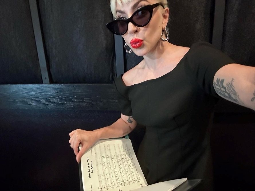 Paylaştığı üç gönderinin ilkinde Lady Gaga, provalara giderken Emilia Wickstead'in Resort 2023 koleksiyonundan siyah kayık yaka elbise ve cat-eye modeli güneş gözlüğü takıyordu.