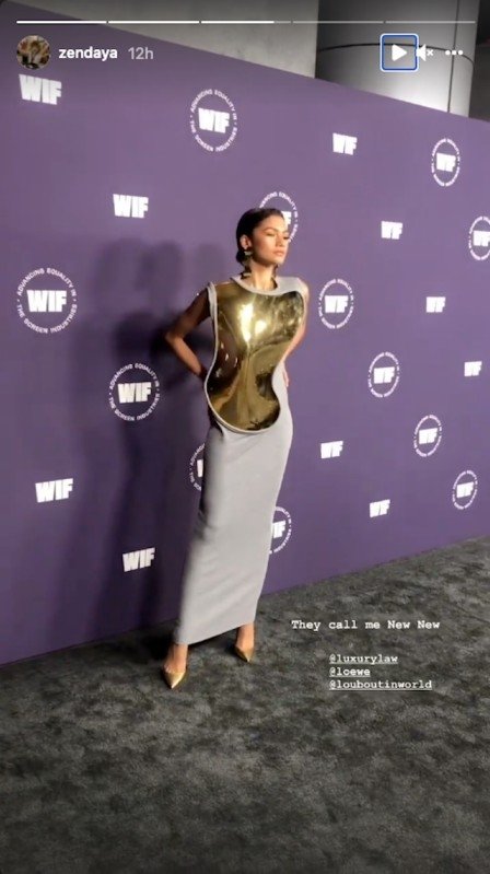 Malcolm & Marie oyuncusu, altı gün önce Paris Moda Haftası'nda gösterilen Loewe'nin bahar '22 RTW koleksiyonundan bir elbiseyle dün gece Los Angeles'ta düzenlenen Film Ödüllerinde Kadınlar'a katıldı. Law Roach tarafından tasarlanan gri bilek boyu body-con elbise, Z'nin gövdesinin çoğunu kaplayan parlak bir altın plakaya sahipti. Göze çarpan göğüs plakası, "Fransa'da metal heykeltıraşlar tarafından benzersiz lehimleme ve çekiç teknikleri kullanılarak el yapımı" pirinçten yapıldı.